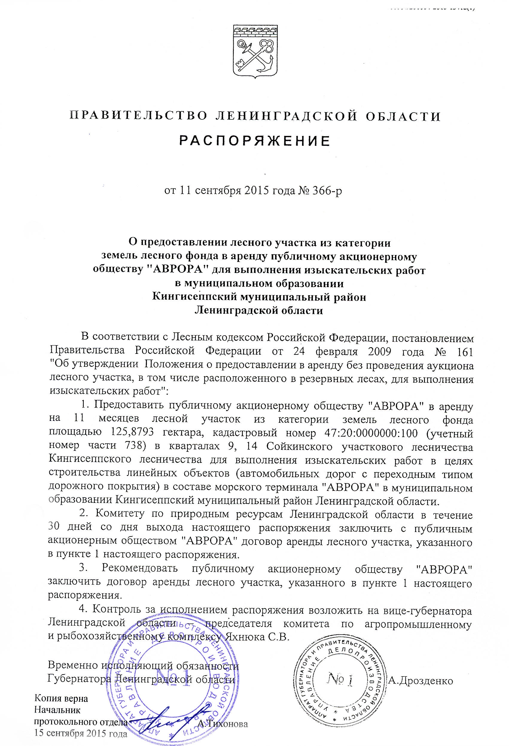 Распоряжение Правительства Ленинградской области № 366-р (125,8793 га)
